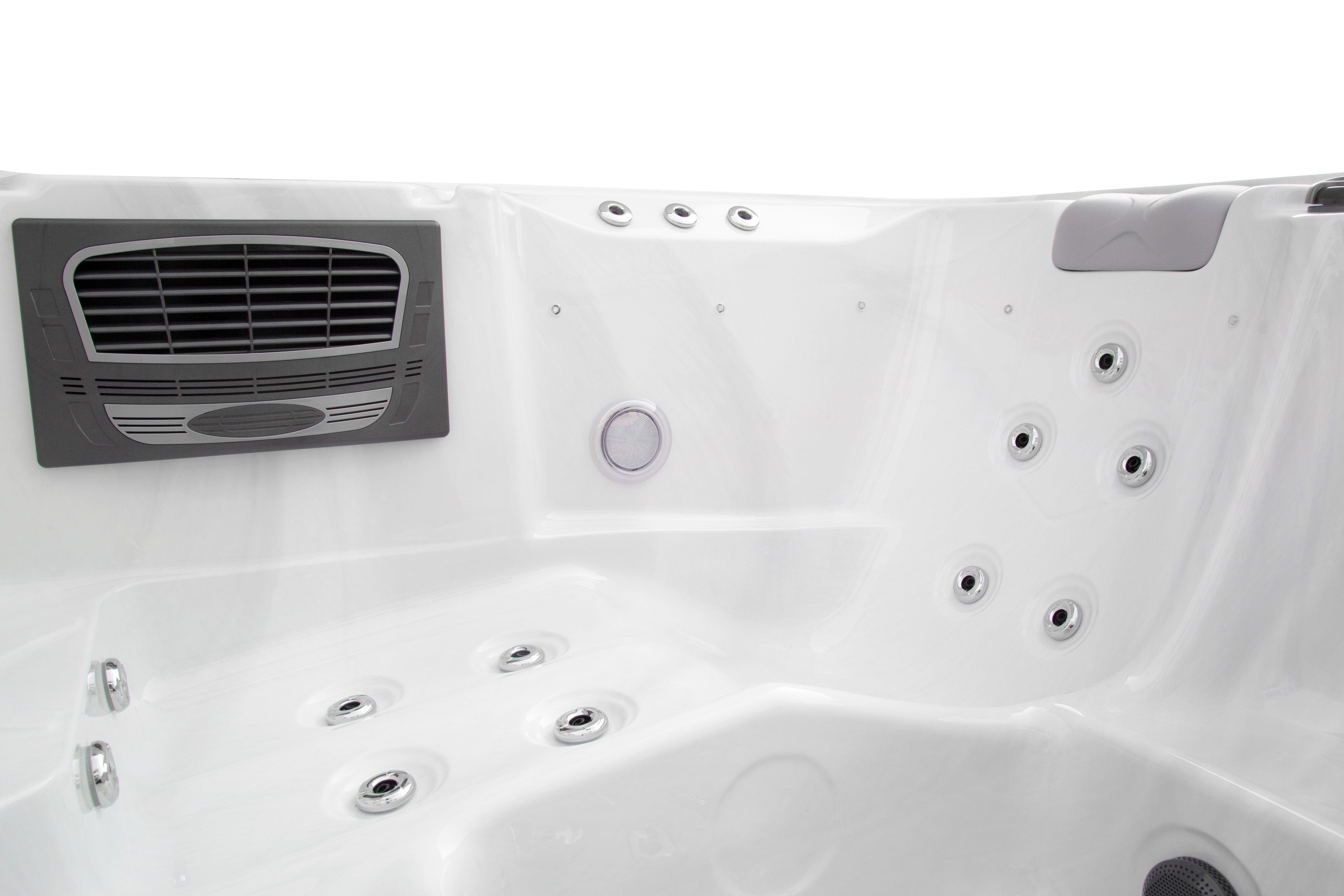 Два мощных насоса по 2,2 кВт работают в разных зонах, обеспечивая эффективный массаж 49 форсунками. Продуманная конфигурация гарантирует равномерное распределение водных потоков для максимального комфорта.